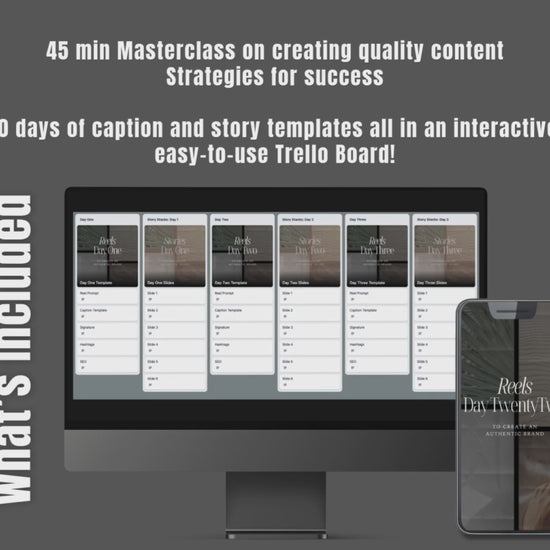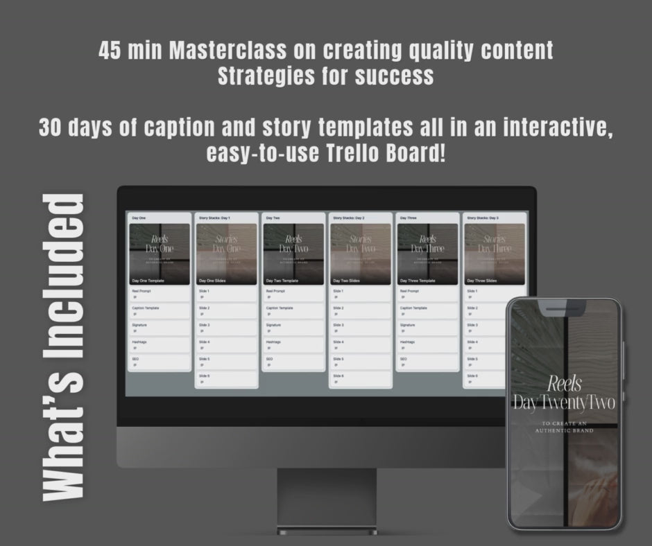Plus, 30 days of caption and story templates neatly organised in an easy-to-use Trello Board!